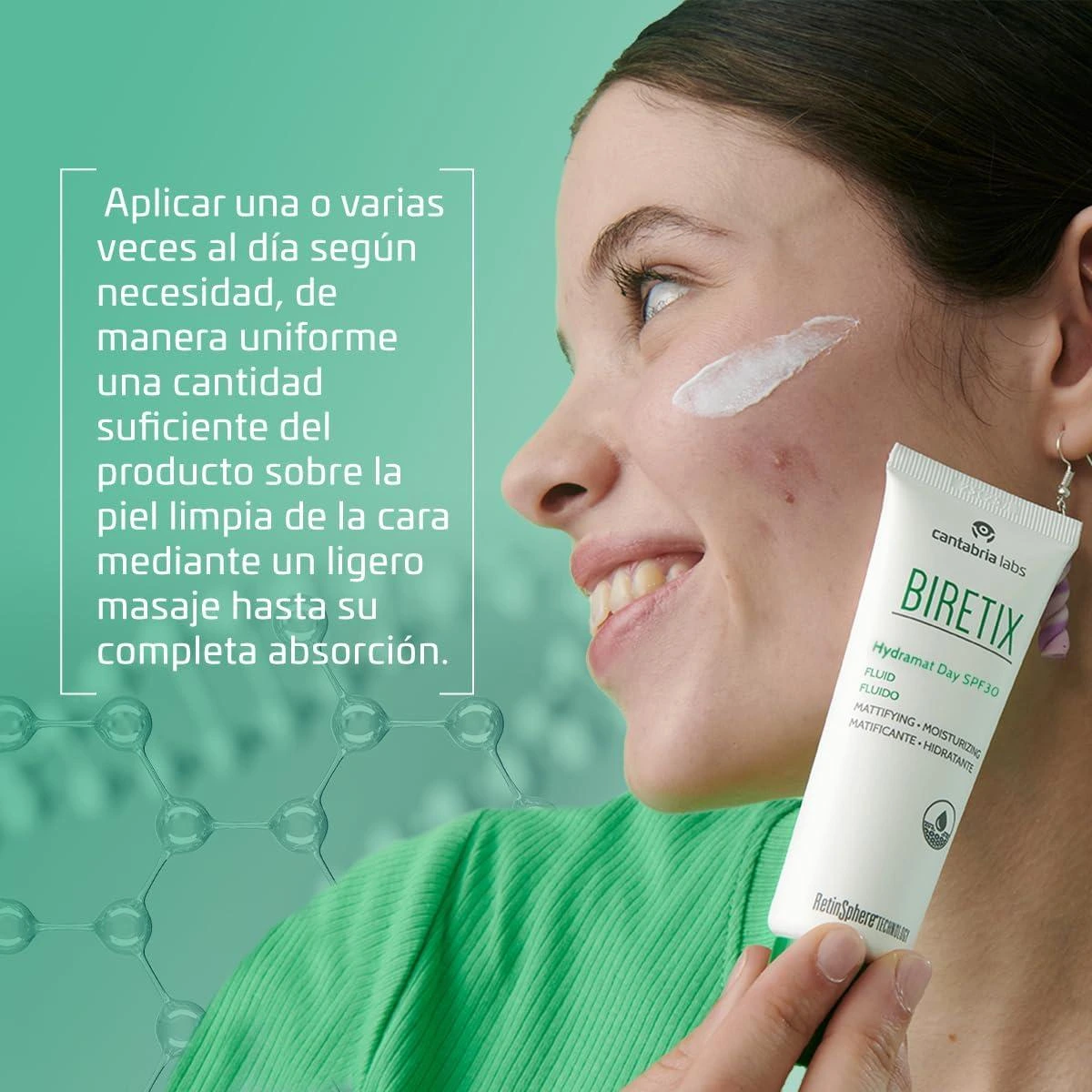 Biretix Hydramat dieninis fluidas mažina odos blizgesį, skirtas kasdienei į bėrimus linkusios odos priežiūrai.