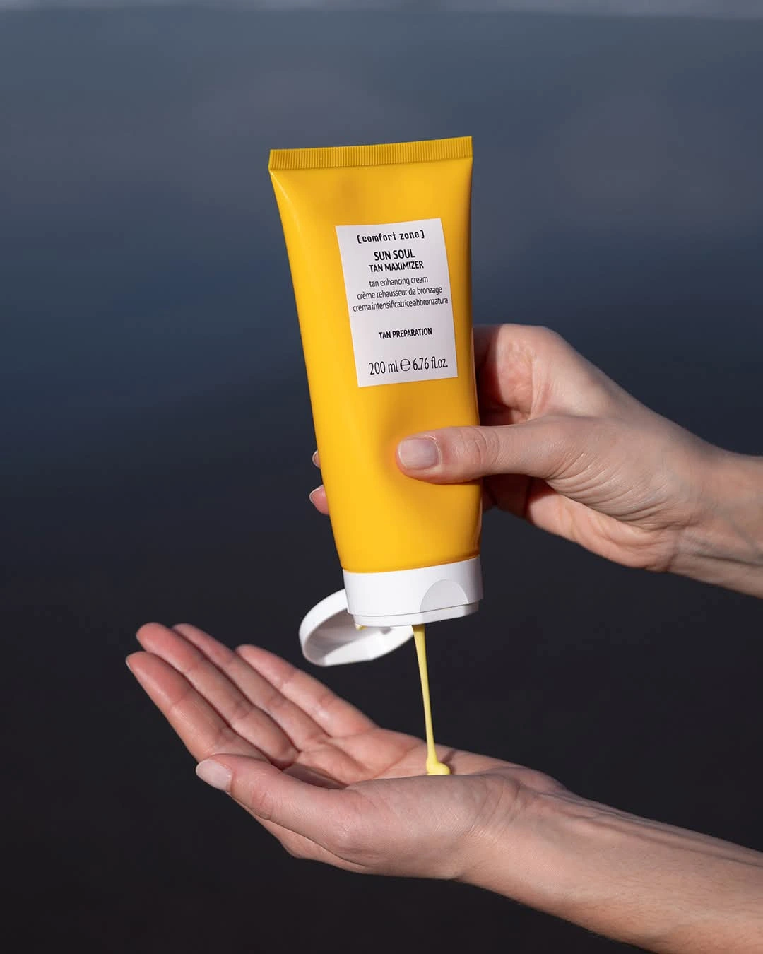 COMFORT ZONE SUN SOUL įdegį skatinantis kremas puikiai dera su kremais nuo saulės, stiprina ir pailgina įdegį.