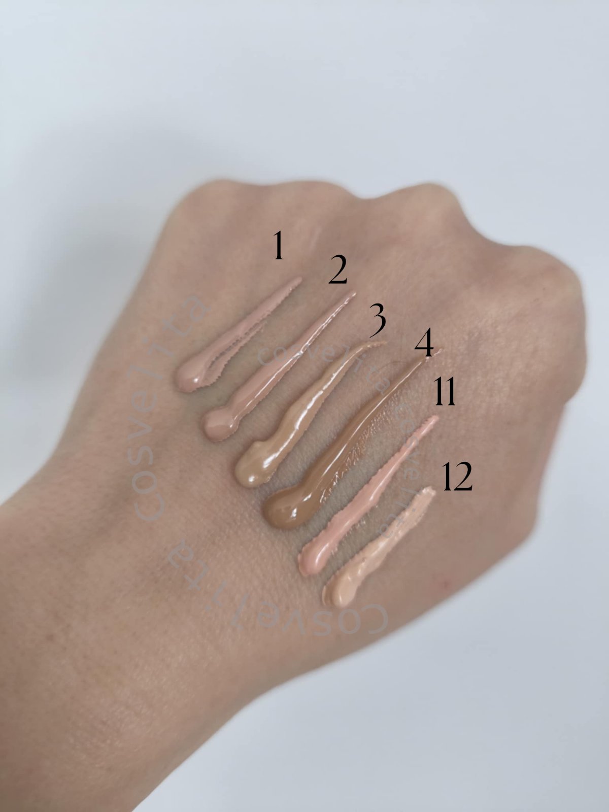 Spalvos: Nr. 1, Nr. 2, Nr. 3 (universaliausia spalva), Nr. 4, Nr. 11, Nr. 12