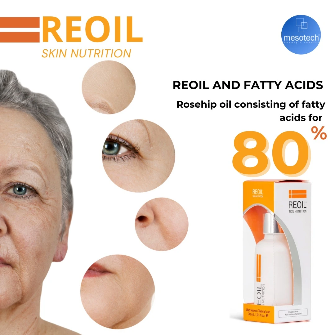 Mesotech Reoil serumas yra labai turtingas riebalų rūgščių šaltinis – jos sudaro iki 80% produkto.