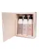 Naturys kūno priežiūros priemonių rinkinys, skirtas naudojimui namuose arba prieš ir po depiliacijos.