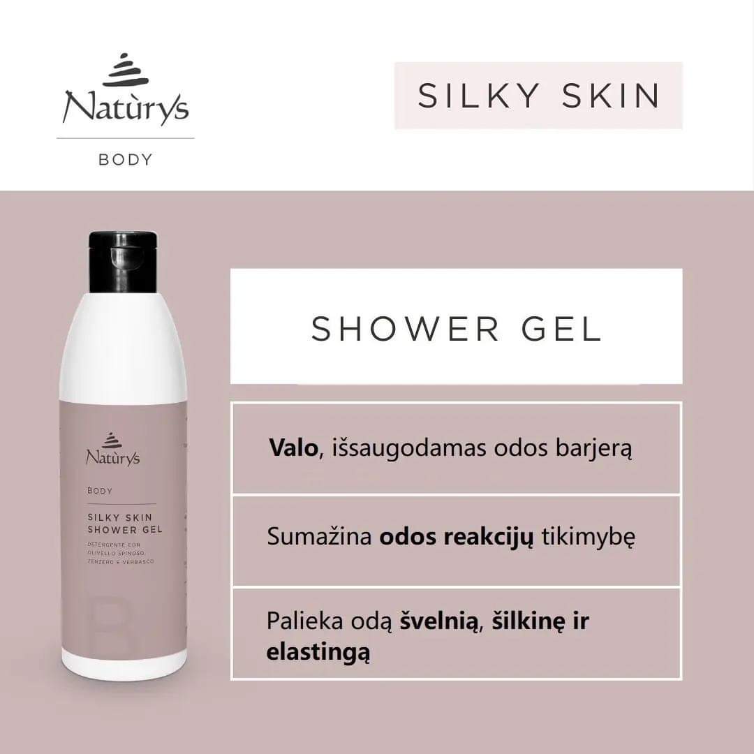 Būkite pirmas aprašęs “Naturys Silky Skin dušo gelis, 250ml”