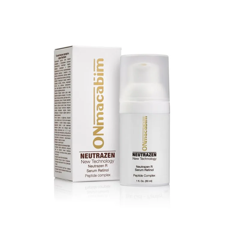 ONmacabim Neutrazen R atkuriamasis serumas su retinoliu išlygina ir pagerina odos spalvą, padidina jos elastingumą, apsaugo nuo odos šiurkštėjimo veikiant ultravioletiniams spinduliams, išlygina smulkias raukšleles ir odos reljefą.